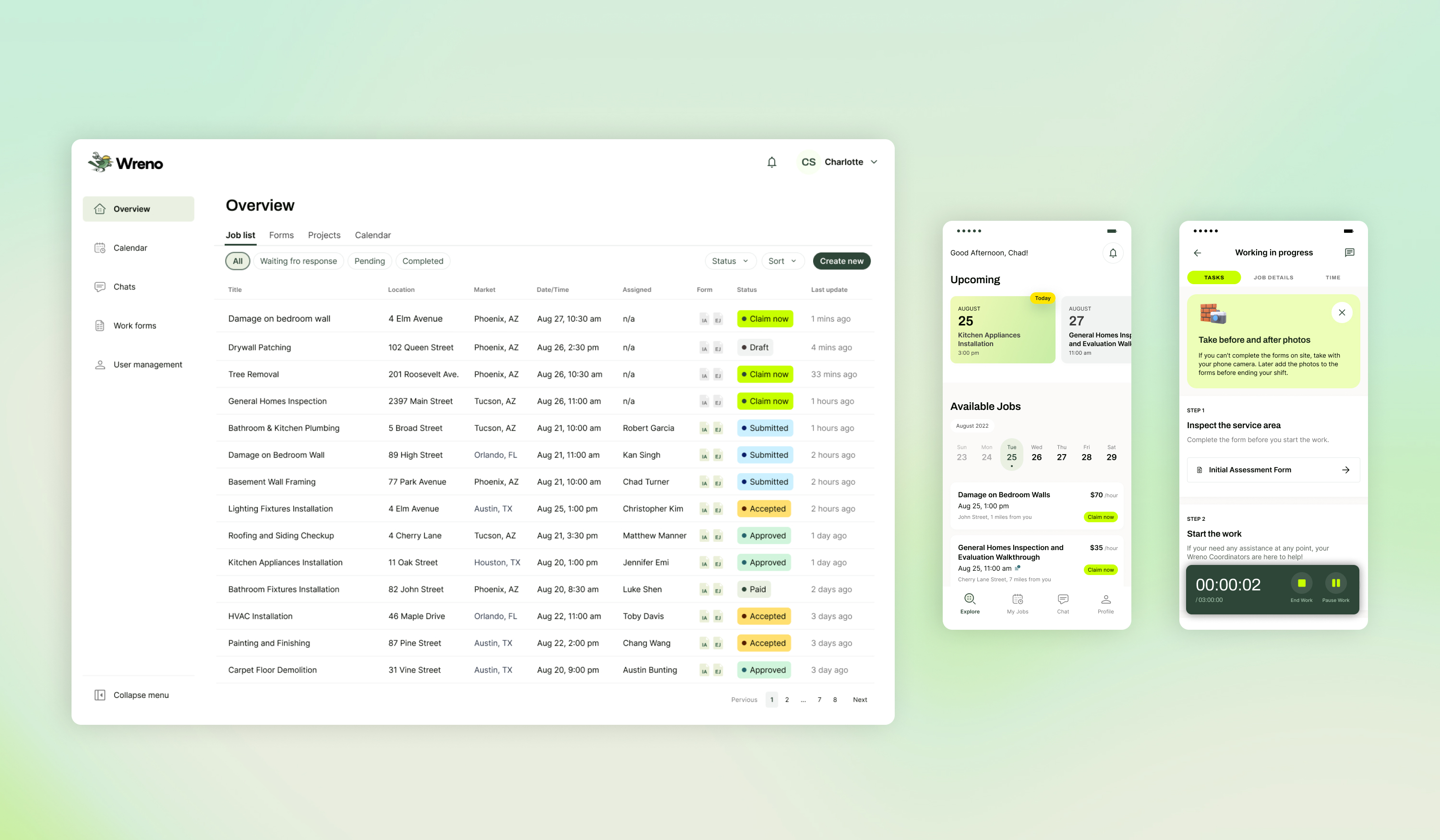 Wreno is a young startup that offers an end-to-end home evaluation and renovation platform for real estate companies in the US by mobilizing local trade businesses and gig workers.